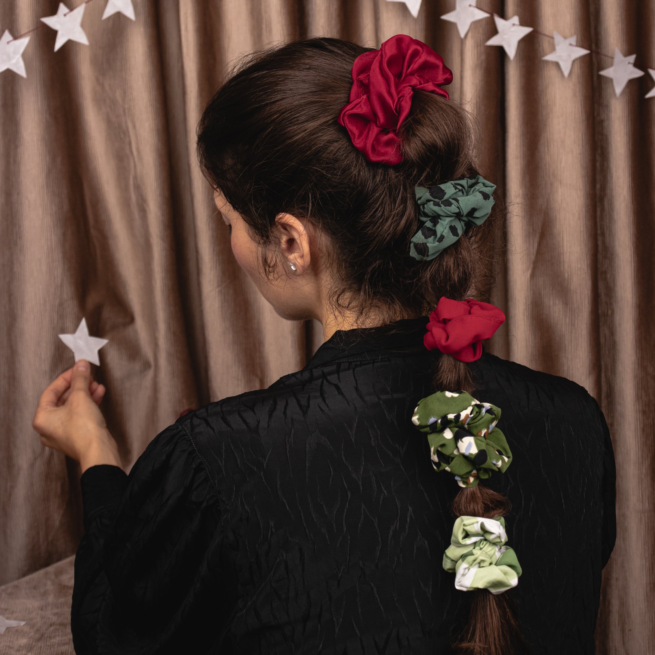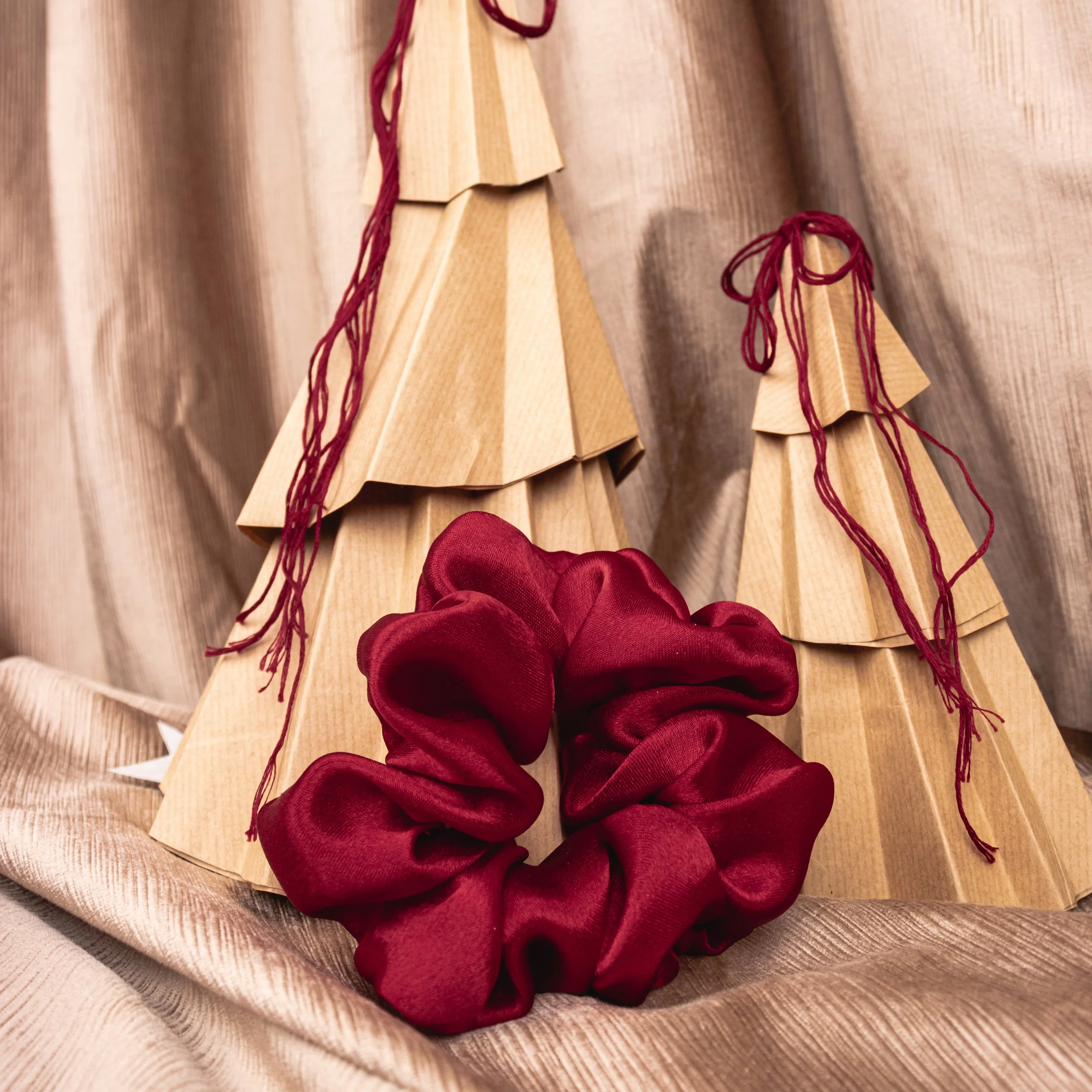 Scrunchies, headbands, hair clips and seasonal decorations crafted from upcycled fabrics. Sustainable pieces stitched with care and quiet beauty, bringing poetry to everyday life.